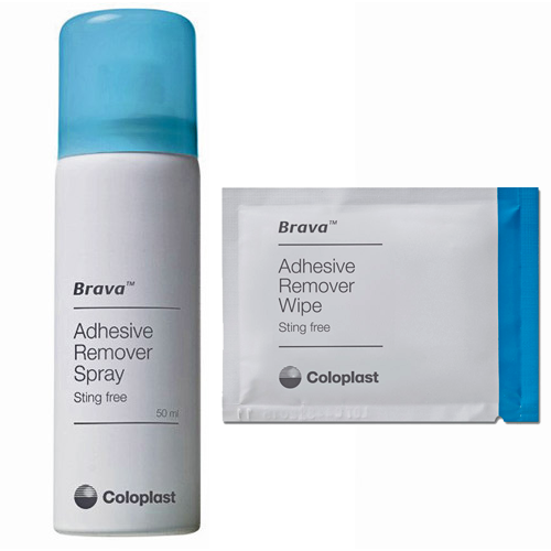 I find the spray better for removing my bag, but then use an adhesive remover wipe to get rid of the sticky residue left on my skin.