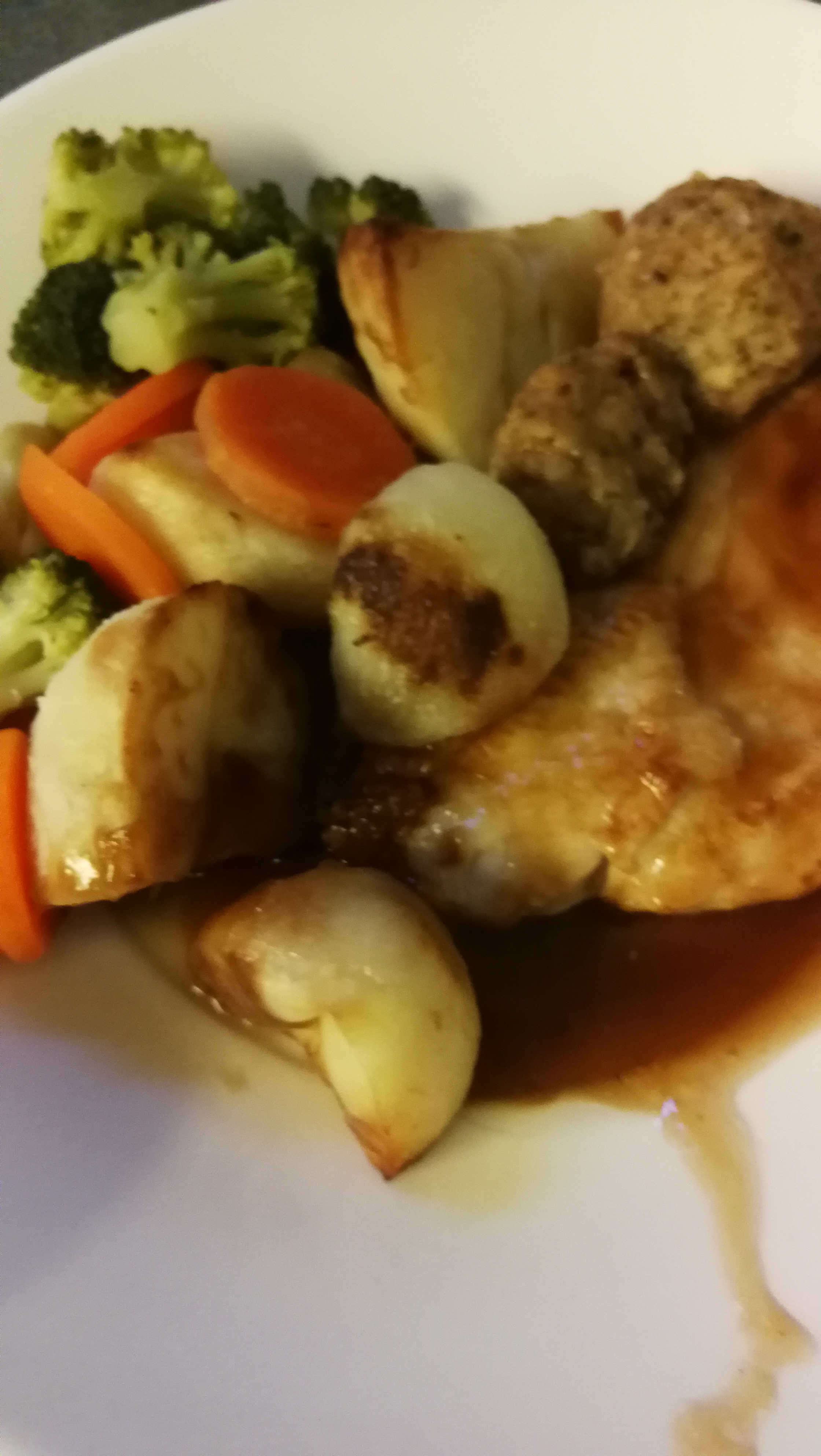 Today I only got tea here but I was pleasantly surprised. I hadn’t ordered it as I wasn’t here obviously and it probably wouldn’t have picked it but it was pretty lovely! I managed about half of it so was pretty proud of myself and although the skin on the chicken looked lovely I didn’t want to risk it! The chicken breast was moist though, the roasties were lovely and the gravy was decent!