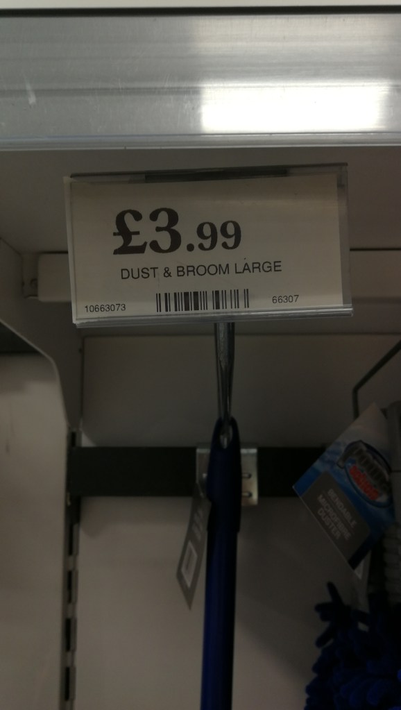 • LONG HANDLED SWEEPING BRUSH AND DUSTPAN – this has been a lifesaver for us! I actually came to own mine after the people who previously lived in my house left it behind when they moved. Today I was in Home Bargains though and saw one for £3.99! Limiting the amount of bending down is vital – doing that repeatedly really wears me out, as well as putting pressure on my joints. This makes those little sweeping jobs in between hoovering so much easier.