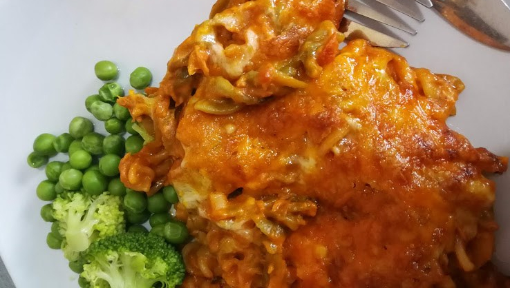 Tea (5.30pm) – Tuna Pasta Bake with broccoli and peas. Pudding was a kids fruity bake bar