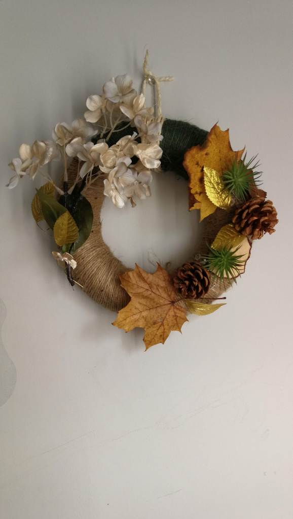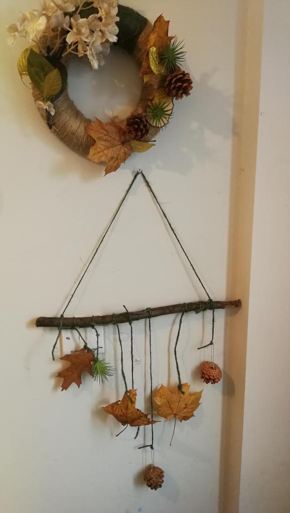 I was really happy with the result and from there I added some Autumnal decorations including some leaves we had collected, as well as some bits I had picked up in Poundland and Hobbycraft.
