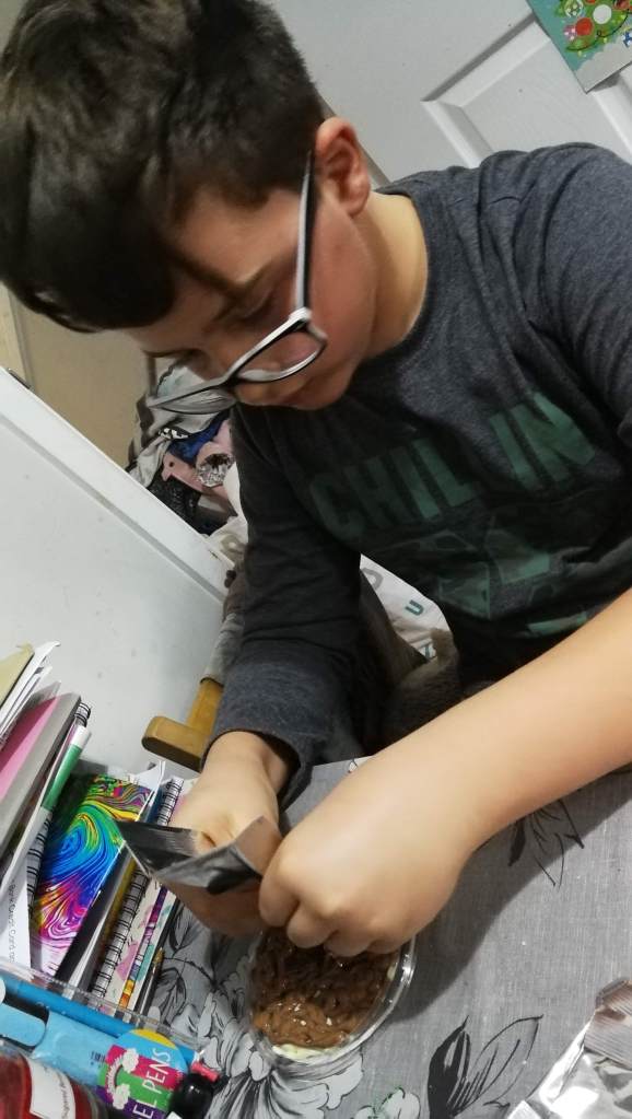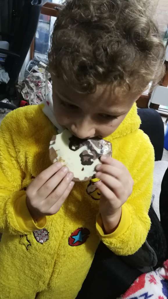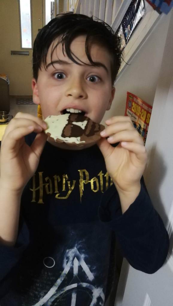 We then popped a snip in the corner of the bag and the boys piped the different colour chocolates on the corresponding parts of the emoji design they had chosen. We then popped them in the fridge for thrifty minutes and when they came out the boys couldn’t wait to give them a try. I had to hold them back so I could get a quick photo before they did! They were super yummy (Leo shared a bit of his with me bless hum) and disappeared rather quickly.