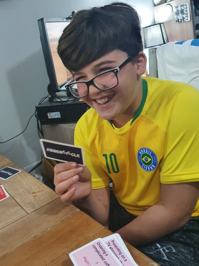 We actually didn’t need to worry! We all had an absolute blast playing this and it was so much fun! We had to tell Ste on a couple of occasions that he was basically just saying the word and he needed to show some expression but he eventually won the game – he was very good at guessing (and me and the boys were obviously amazing actors!). I think the highlights were Riley pretending to talk to a baby and Leo entering a talent show! We all did not stop laughing and had such a good time.