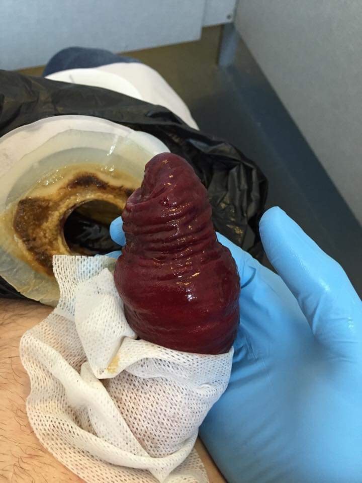 Firstly, I want to say tat Chris is an extreme case – he experiences large prolapses on a regular basis. Thi is not normal – many people with a stoma never experience a prolapse and for those that do, it is generally resolved pretty quickly. However, I aim to share stories of people living with chronic, and often invisible illnesses, and this is what he deals with on a daily basis.