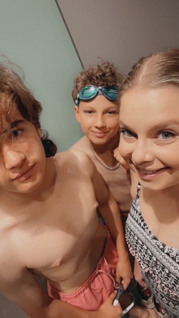 The boys are a bit older now and would happily wait for me, but this was trickier when they were younger and needed my help themselves, especially if I was on my own with them. Allowing the bag to dry off and waiting to change it till you get home is definitely easier when you have little ones with you and is definitely something I’d recommend doing. Always have your spare supplies on hand just in case, but I have never needed them after a swim session so far thank goodness!